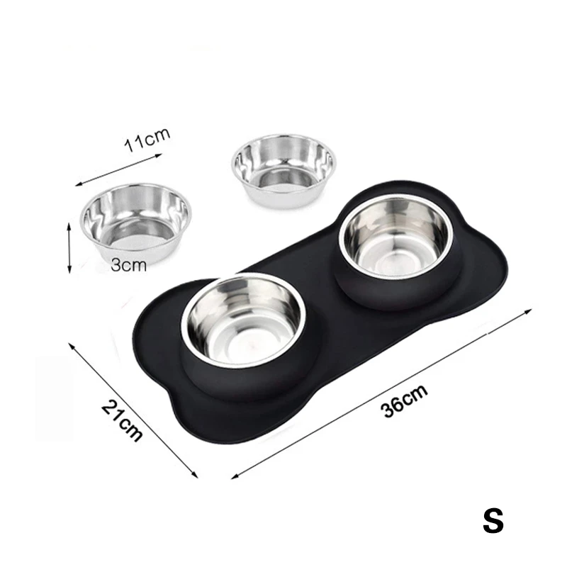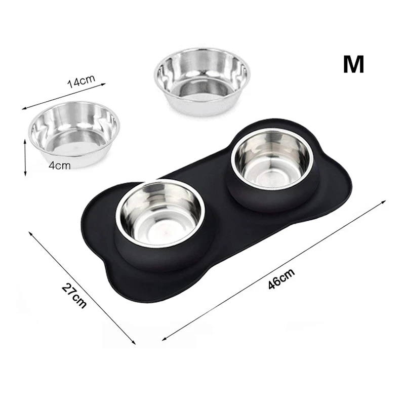Dog Bowls Stainless Steel Feeding Dish Pet Drinking Bowl Food Feed Placement No Spill Non-Skid Silicone Mat Feeder Bowls for Pet